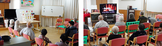 趣味やイベントを通じて、楽しみながら生活機能回復維持を行う事を目的としています。